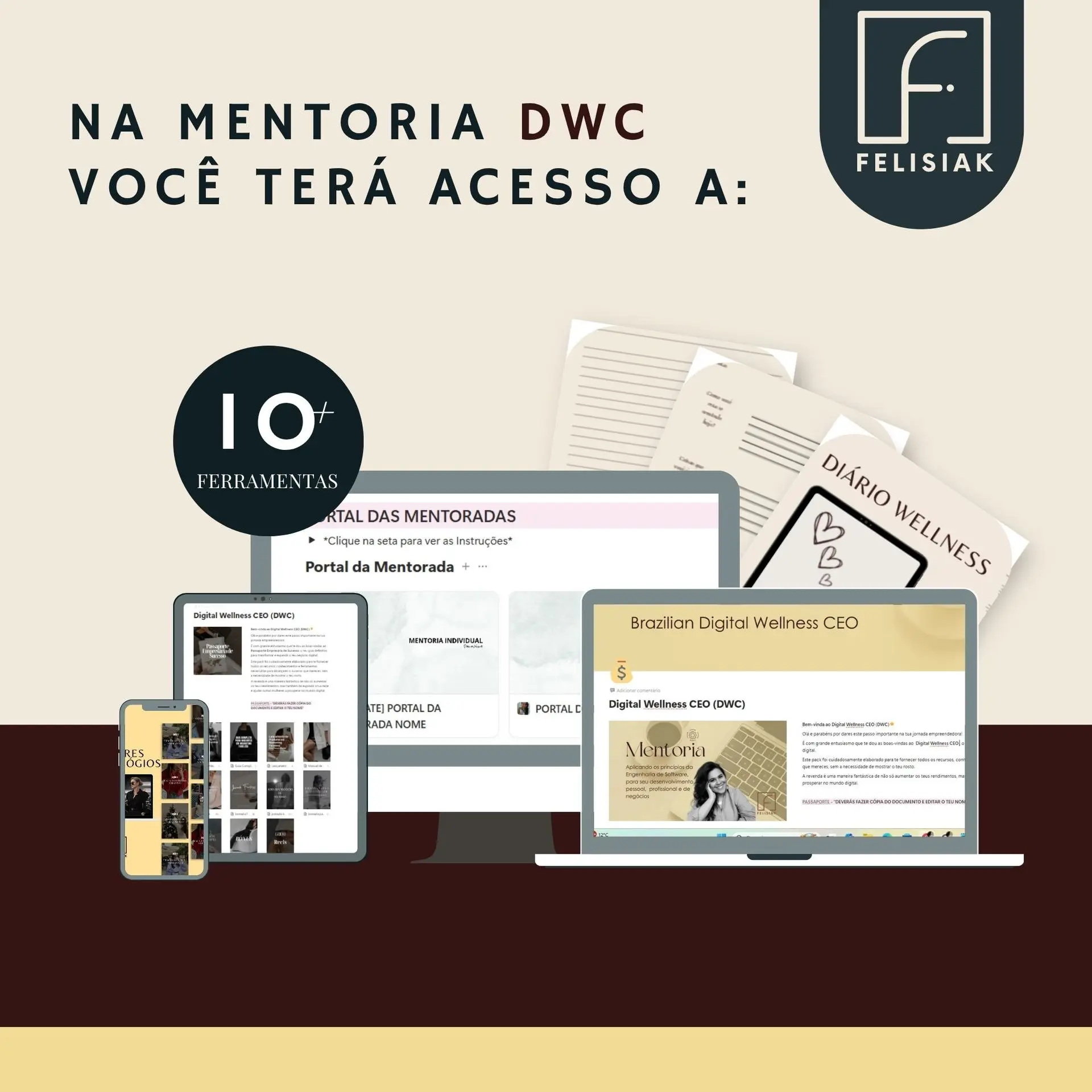 Ao se inscrever na Mentoria PREMIUM, você receberá um ecossistema completo para o seu desenvolvimento, do seu negócio, do seu bem estar e sua renda:
